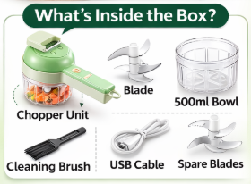 Cut, Chop & Mince in Seconds – 4-in-1 Electric Vegetable Cutter